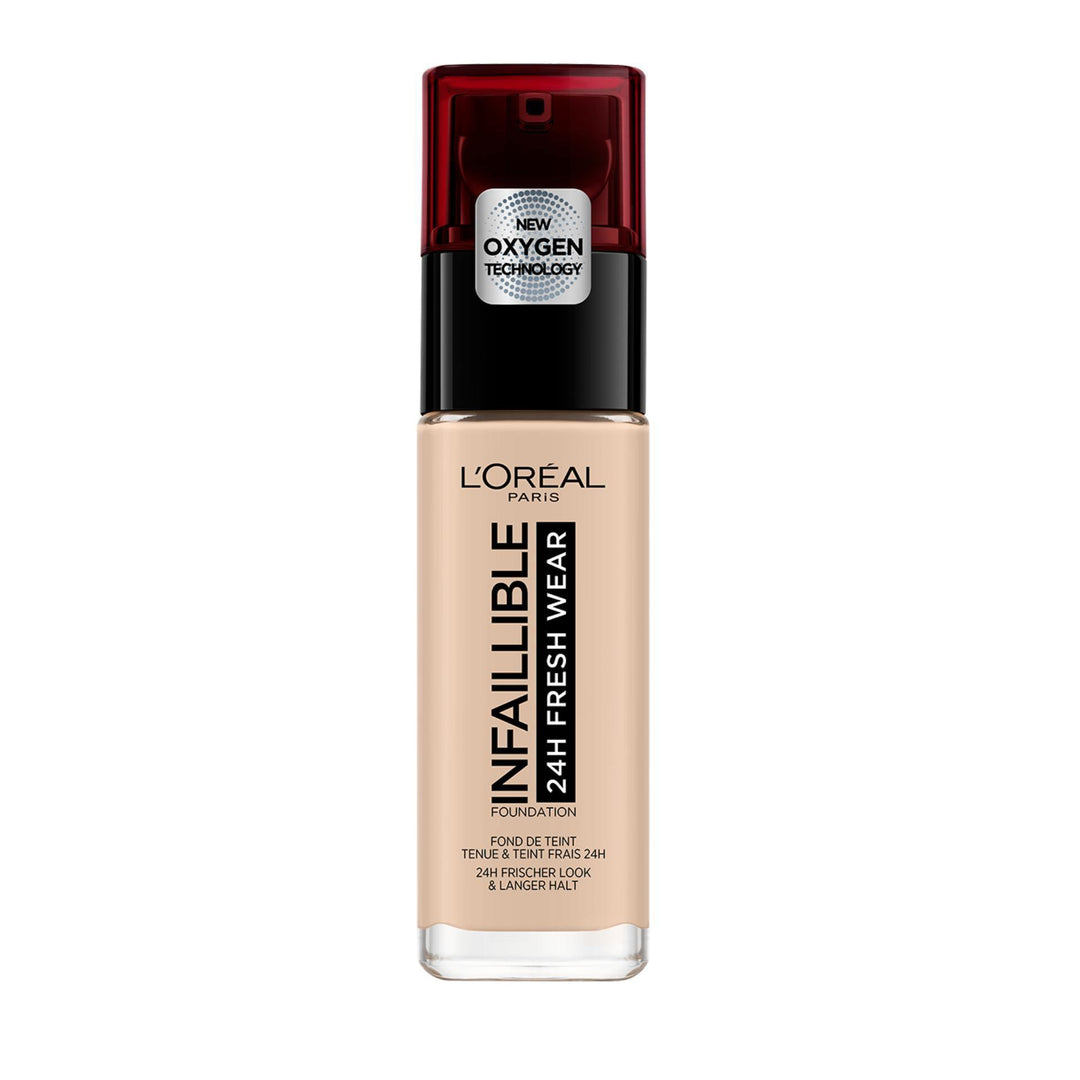 Introducing Infallible 24H Foundation by LOréal Paris. High coverage longwear foundation that hides the appearance of fatigue and blemishes. Now with Hydrating Hyaluron Complex the 24H non-stop formula stays on and feels fresh from day to night.