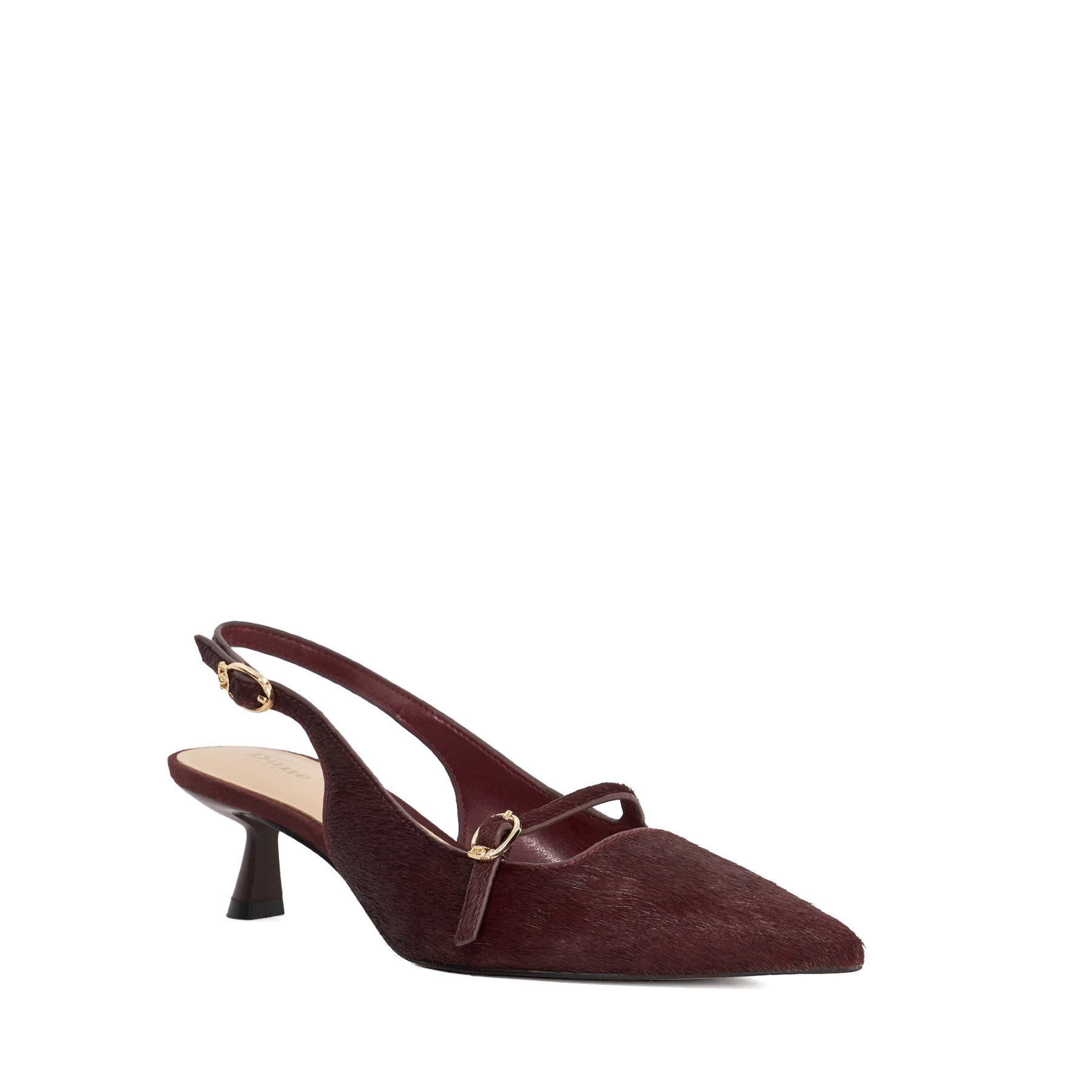Give your footwear selection a boost with Connect. Crafted in a striking high-shine finish these shoes feature a modern flared heel that adds a bold fashion-forward edge to a timeless silhouette. The delicate strap and buckle detail bring a touch of vintage charm while the pointed toe delivers a sophisticated profile. Whether dressing up your everyday workwear or adding polish to evening ensembles Connect delivers effortless style with a confident twist.