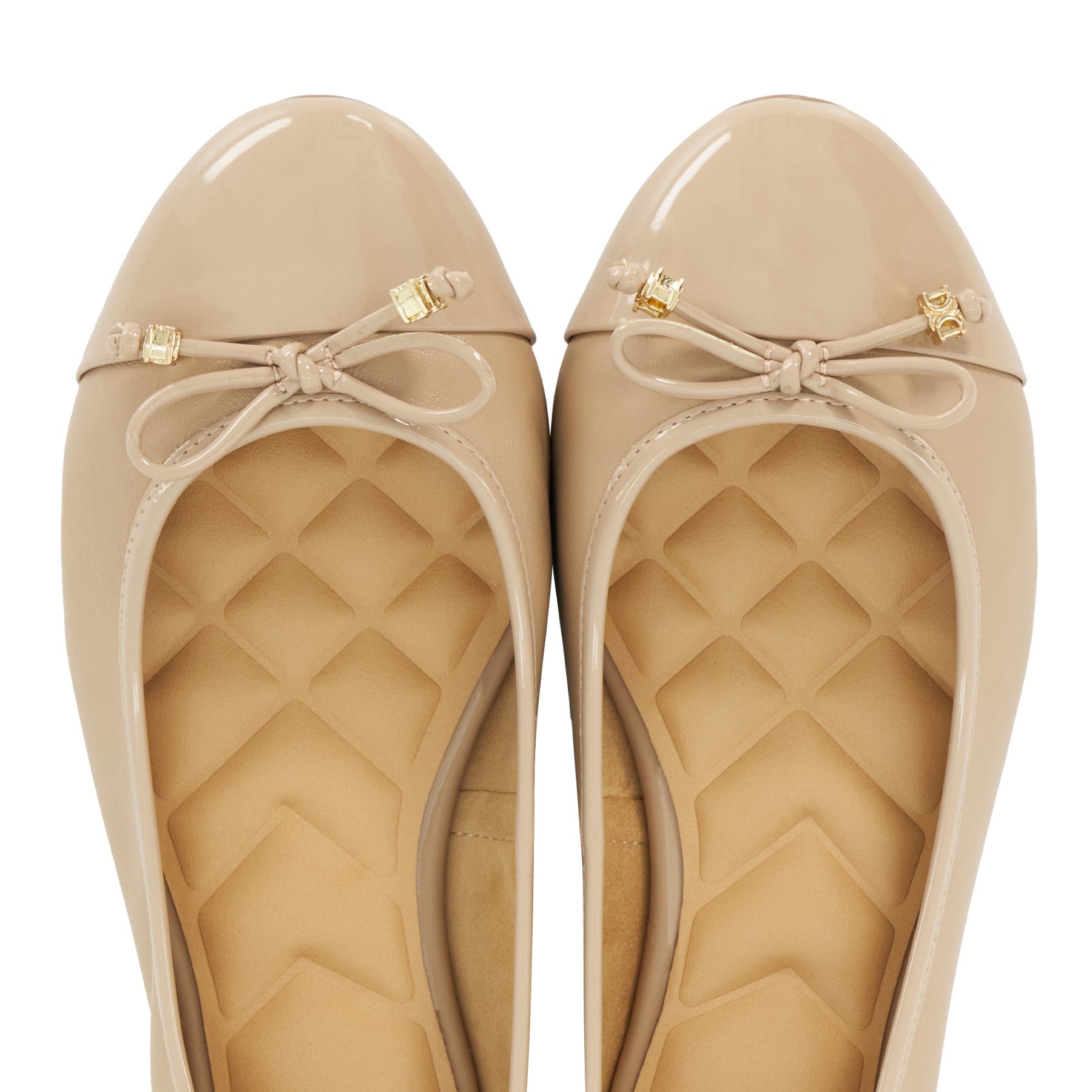 Our own take on a signature style our Hallo ballet flats boast a feminine bow that's enhanced with our bespoke charm detailing. Designed with a quilted comfort sole for comfort with every step  this round-toed silhouette pairs perfectly with everything from denim to dresses alike.