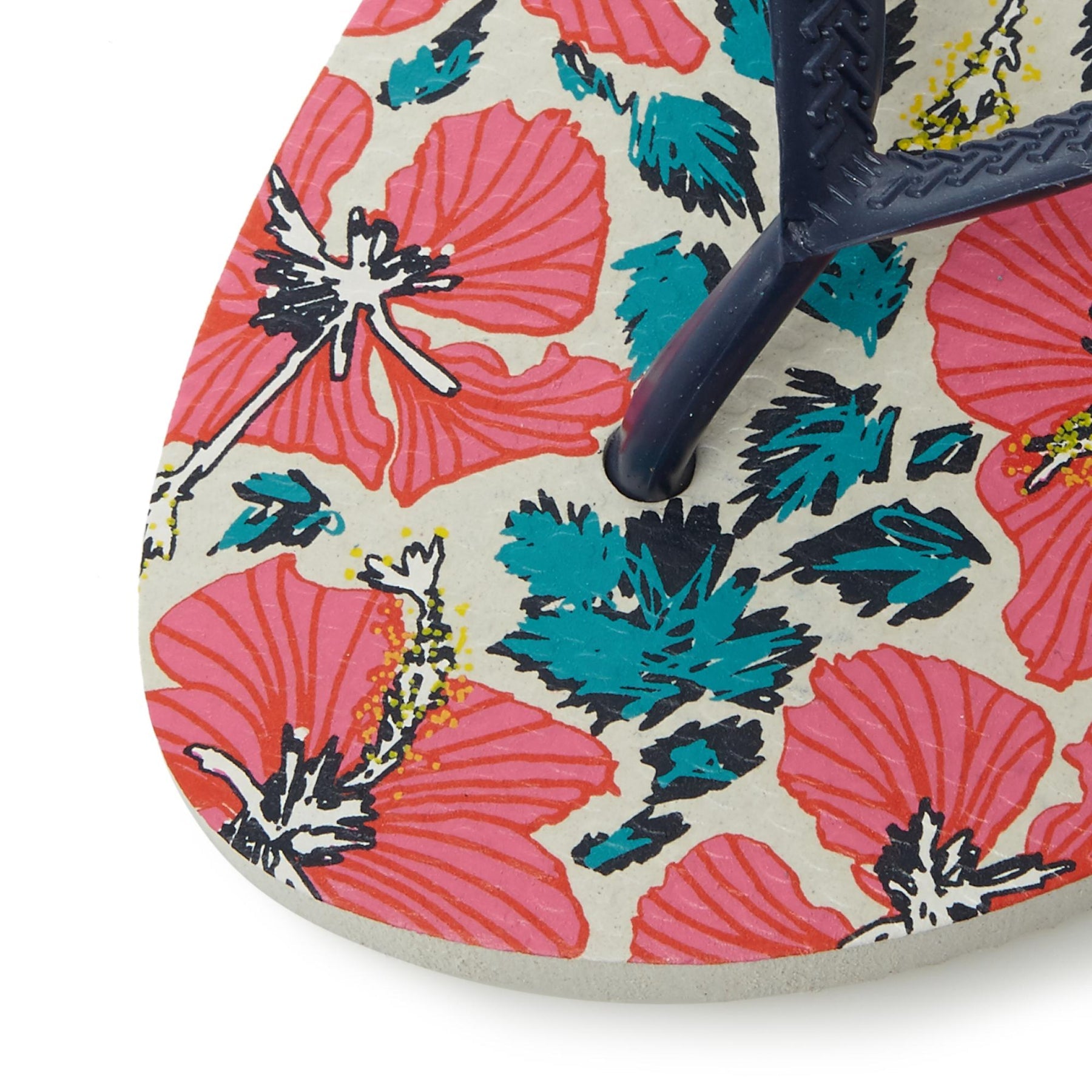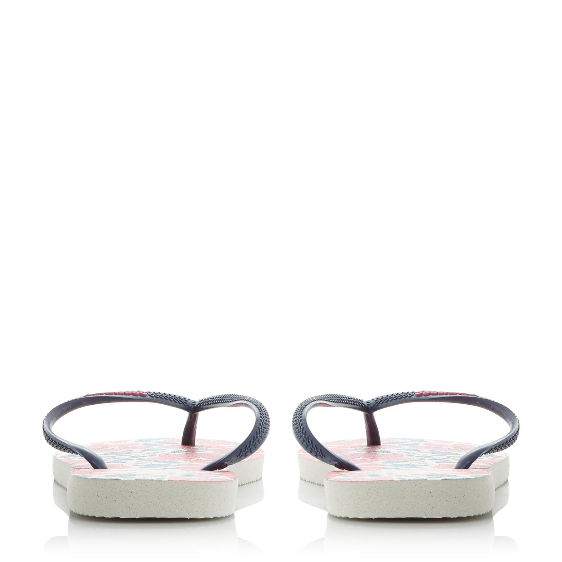 Embrace flower power this summer with this pretty floral print flip flop. This toe post style features slim straps with brand logo detailing. Team this with swimwear while by the pool or denim shorts and a tank top.
