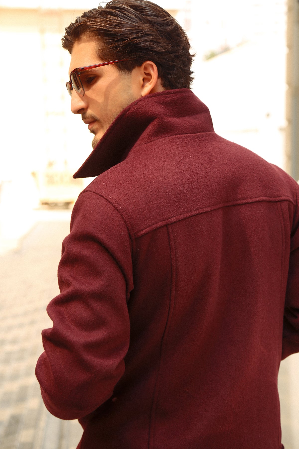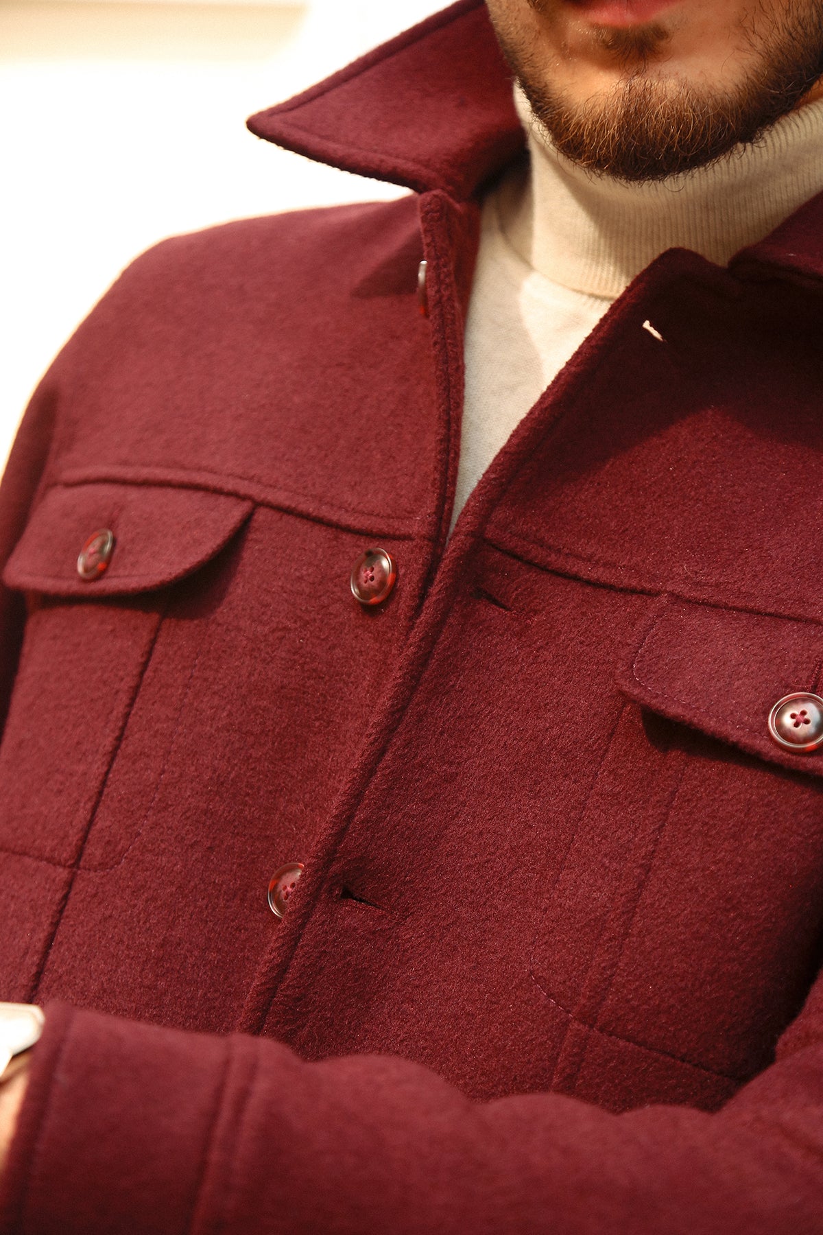 - Wool blend fabric offering warmth with a smooth, structured feel