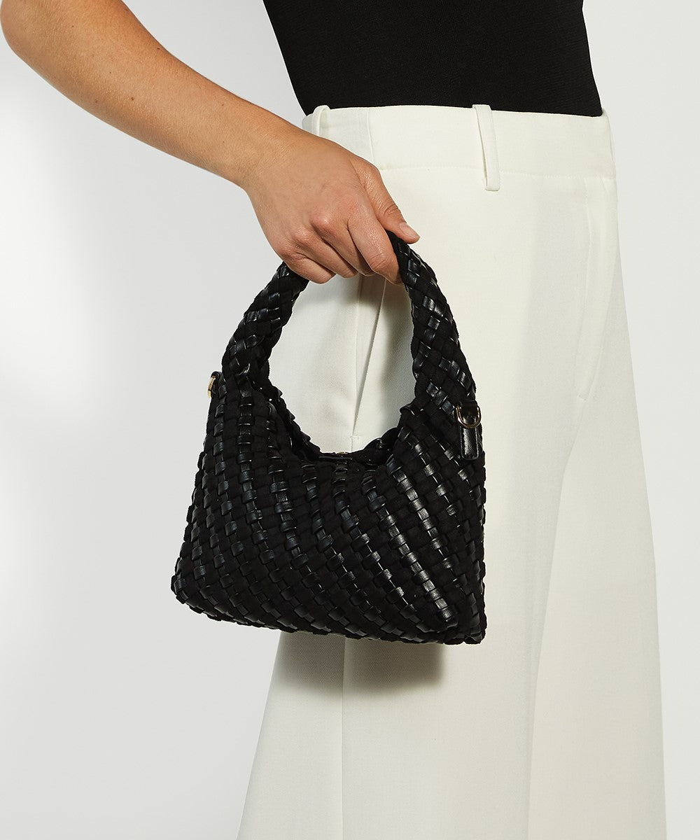 This smaller version of our iconic Deliberate woven bag  this grab bag features our logo on the magnetic closure and an additional branded zip-pouch for organised storage. The detachable strap and the ability to transform from a grab bag to a cross body  add to the versatility of this chic style.