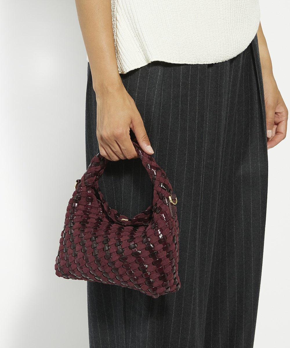 This smaller version of our iconic Deliberate woven bag this grab bag features our logo on the magnetic closure and an additional branded zip-pouch for organised storage. The detachable strap and the ability to transform from a grab bag to a cross body add to the versatility of this chic style.