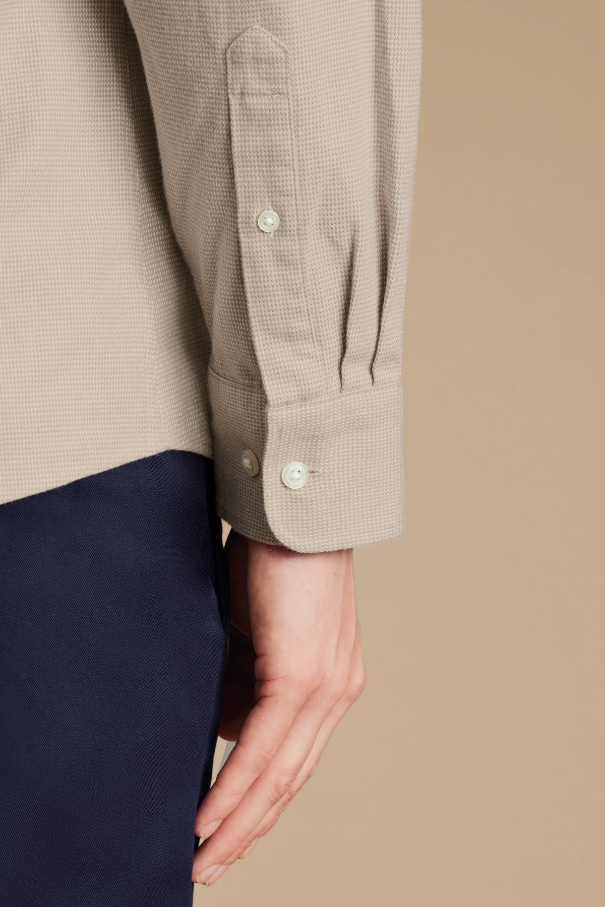 "These shirts combine the pure comfort of flannel with the sophistication of a dobby weave. The mid-weight cotton is breathable and exceptionally versatile, ready to slot into your all-year wardrobe. It's brushed on both sides too, for that loungewear-like softness.