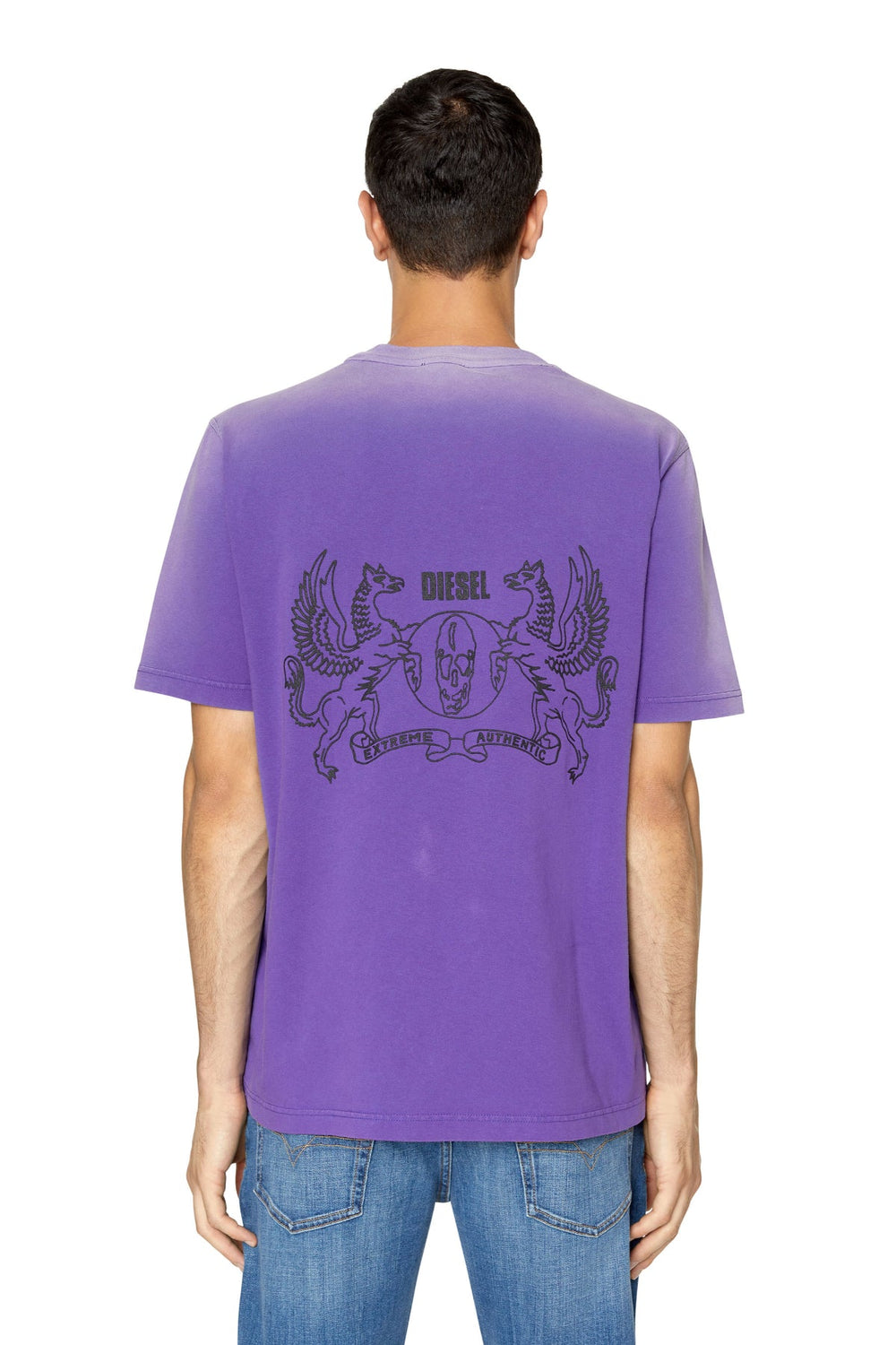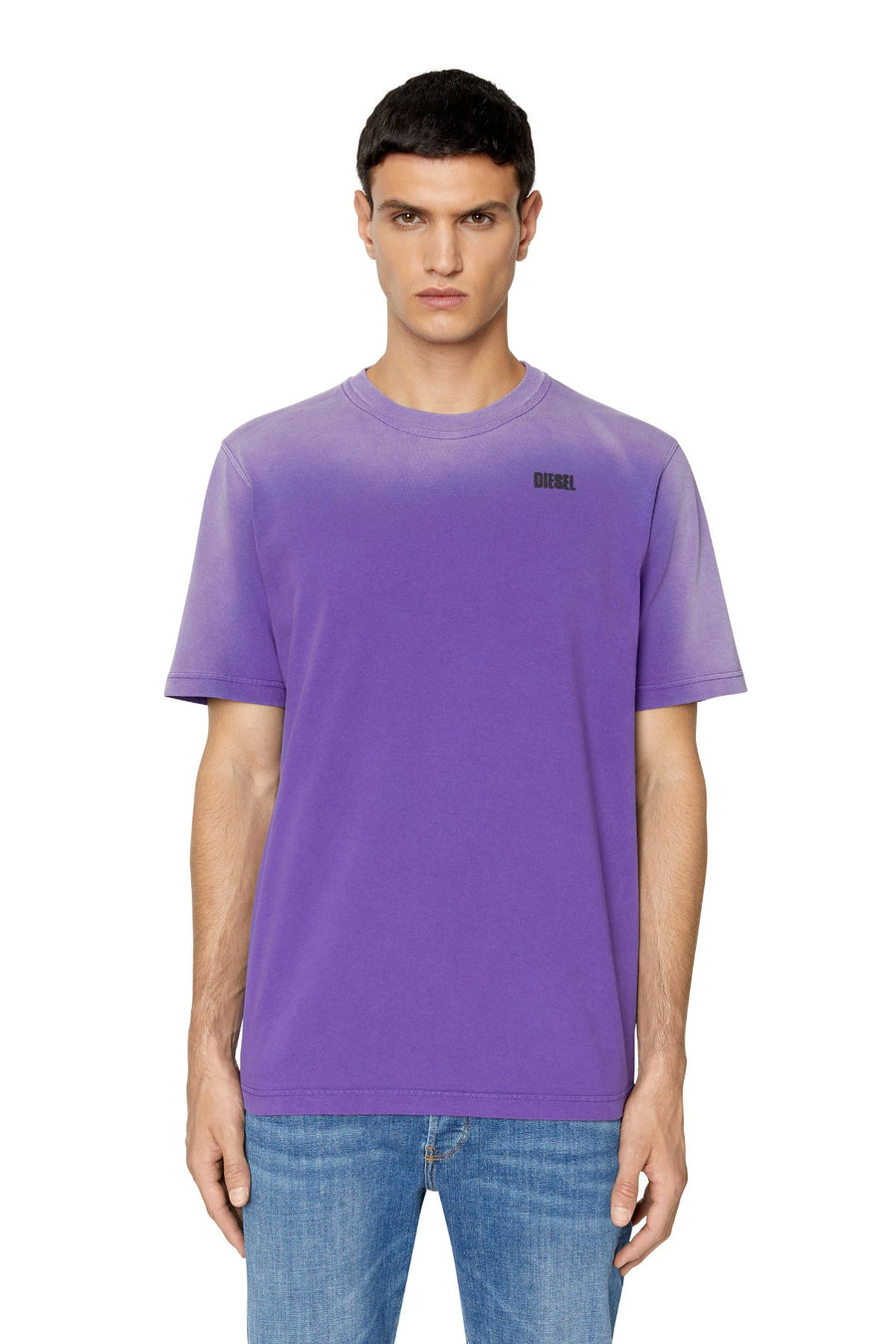 Men's regular-fit T-shirt made from cotton jersey, garment-dyed and treated to look like it's been faded by the sun. Branded with Diesel puff prints on the front and back.