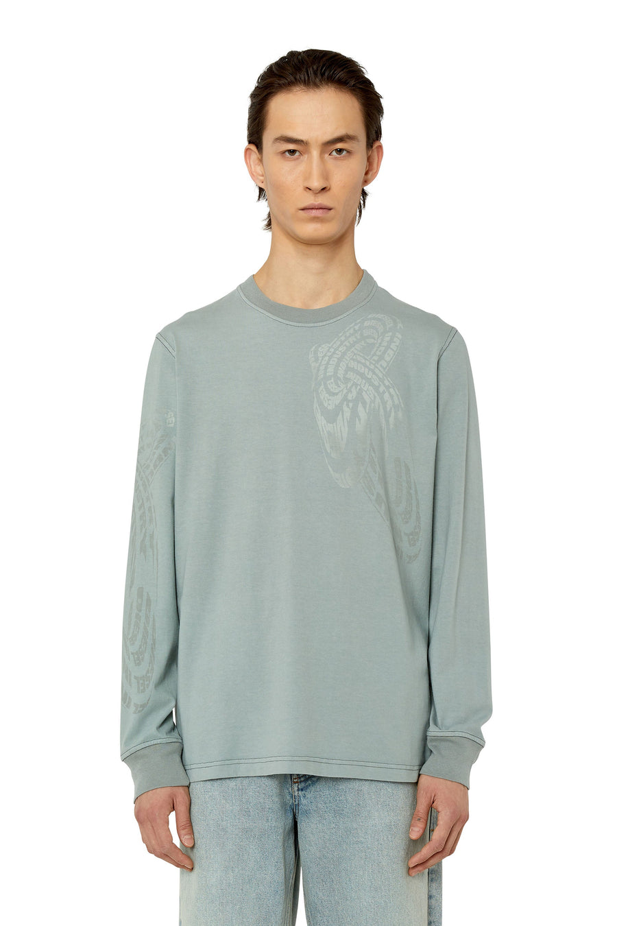 This men's cotton T-shirt has a regular fit and long sleeves. The warped logo graphics are printed using special thermosensitive technology to temporarily change colour in response to heat.