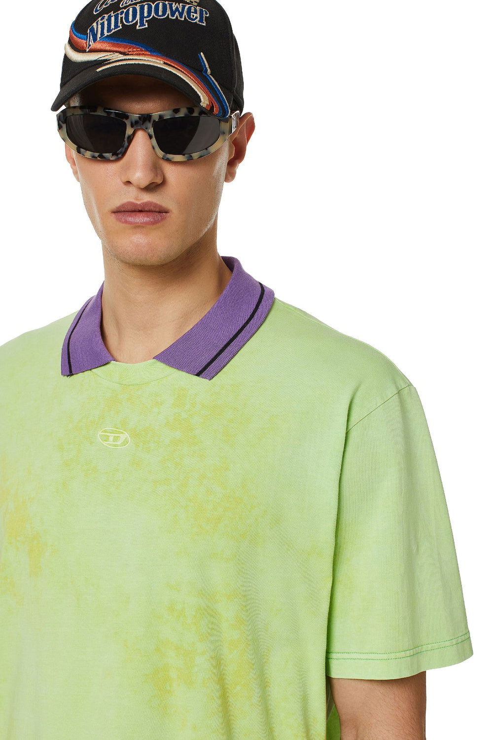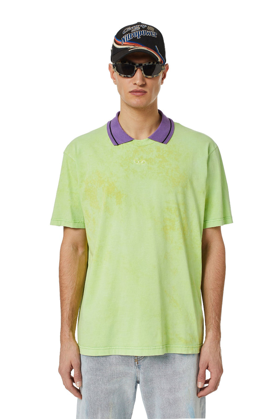 Crafted from cotton jersey, this regular-fit T-shirt has been pigment-dyed and finished with a strong acid wash for a mottled effect. Updated with a contrast knitted polo collar and branded with a tonal embroidered D oval logo.
