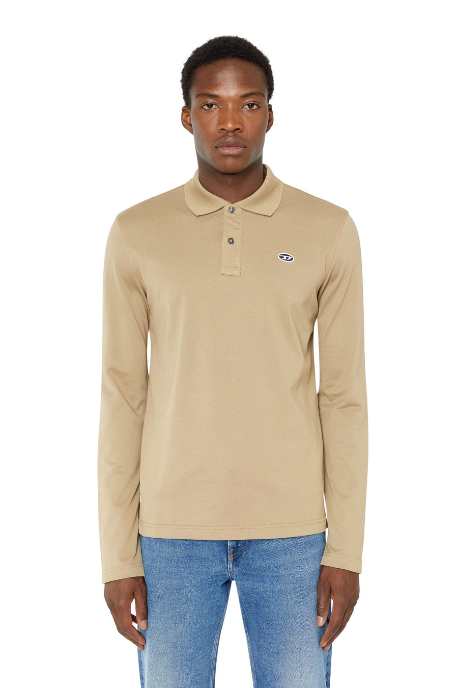Men's long-sleeved polo shirt cut from mercerised cotton piqué. Slim-fit design, branded with an oval D patch on the chest.