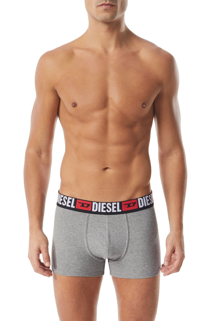 Three pack of plain stretch cotton boxer briefs in assorted colours. Each pair features an elasticated jacquard waistband with an allover Diesel Denim Division logo. Seamless back for enhanced comfort.