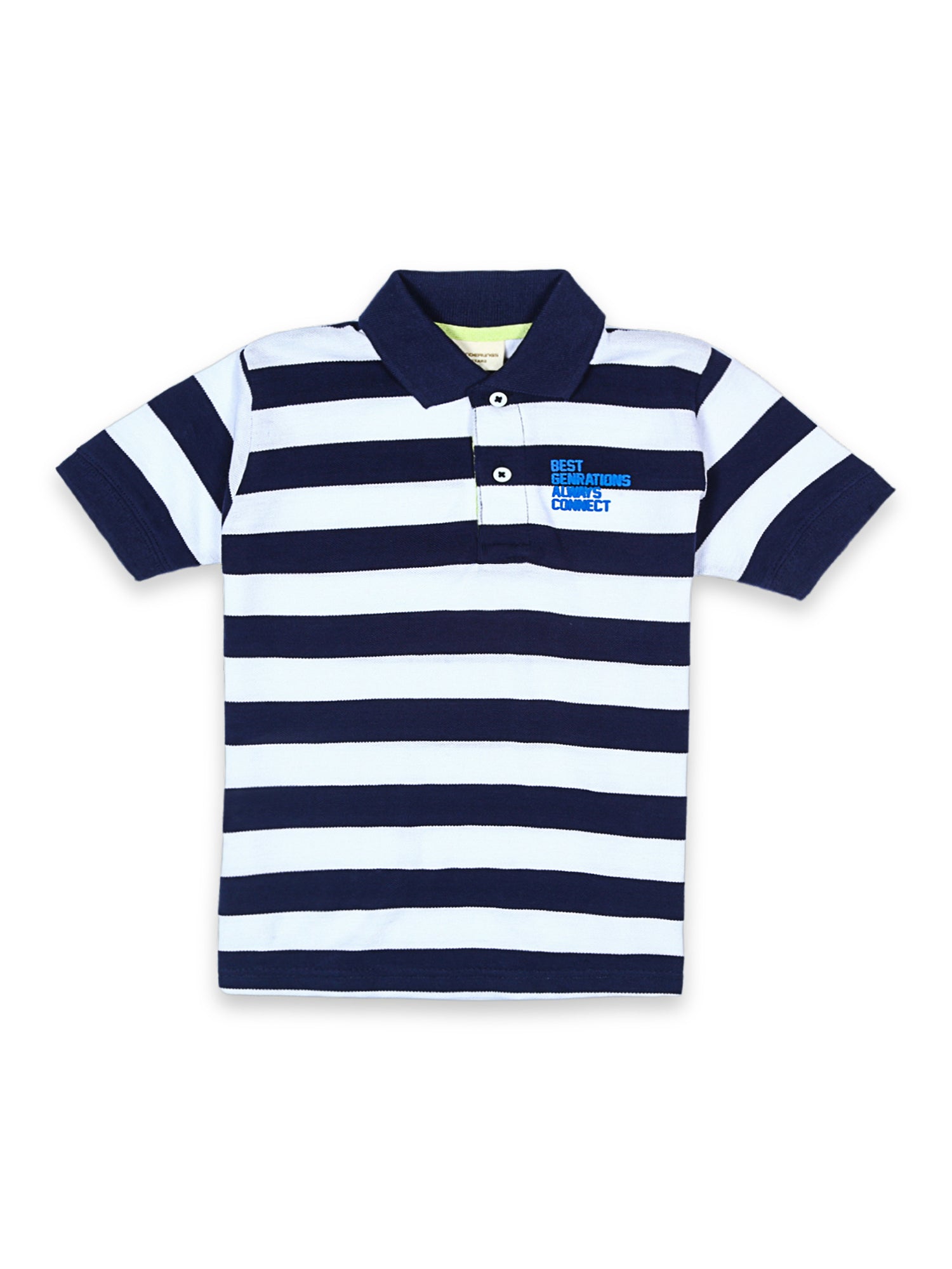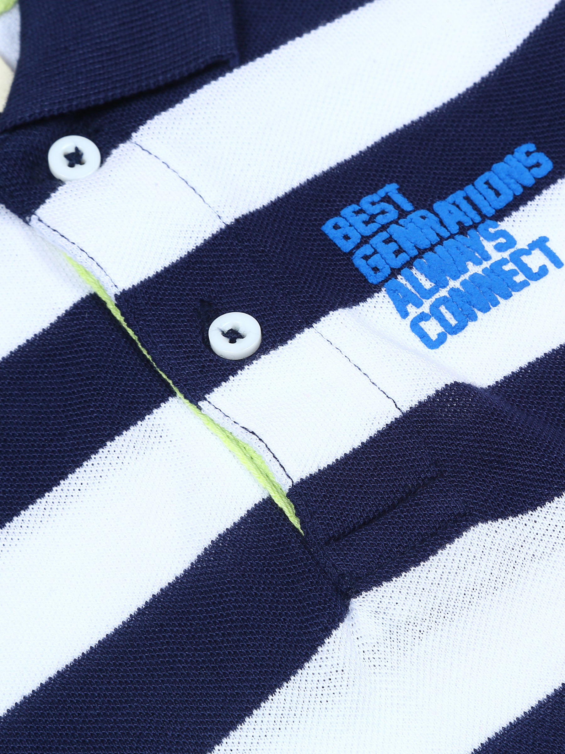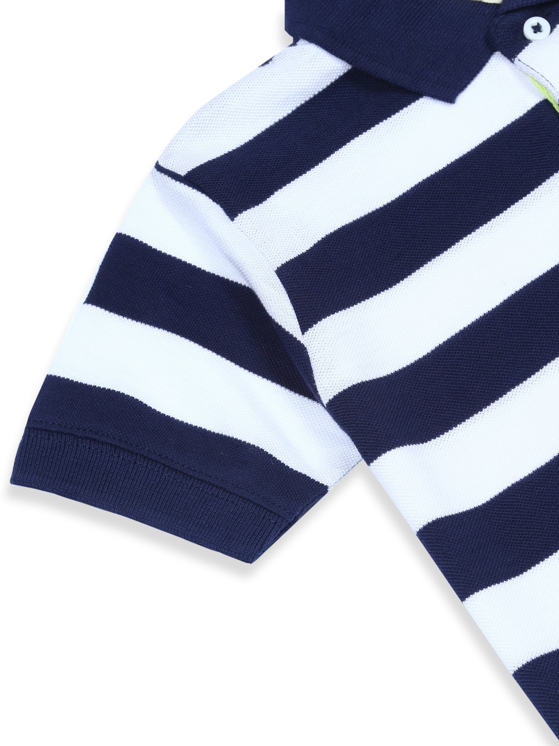 A cool and classic striped cotton pique polo with a touch of caption & neon fun trims. -100% Cotton -Puff Print -Machine Wash Cold