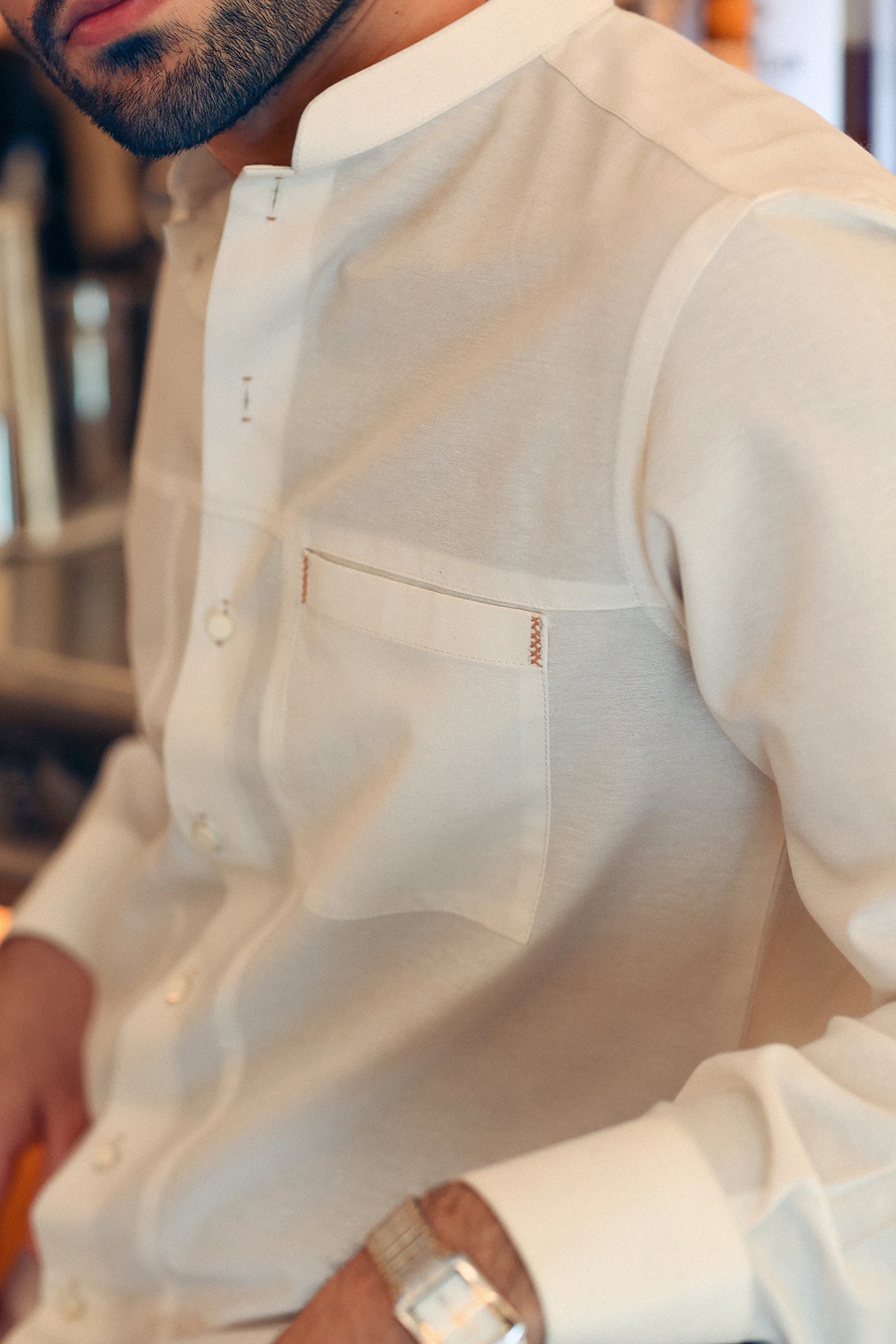 - Hand-Stitched Accents: Hand-stitched accents on the pocket and buttonhole evoke a sense of artisanal craftsmanship and sophistication.